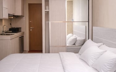 Apartemen type studio yang nyaman, aman, bersih. Dengan suasana yang homey dan fasilitas lengkap full furnished, alat makan dan mandi. Anda juga dapat menikmati fasilitas kolam renang dan koneksi langsung ke Mall Cinere Bellevue. Kami menyediakan waktu sewa apartemen fleksibel mulai dari 3 jam, 6 jam, harian, bahkan Mingguan dengan harga terjangkau tergantung kebutuhan anda.
